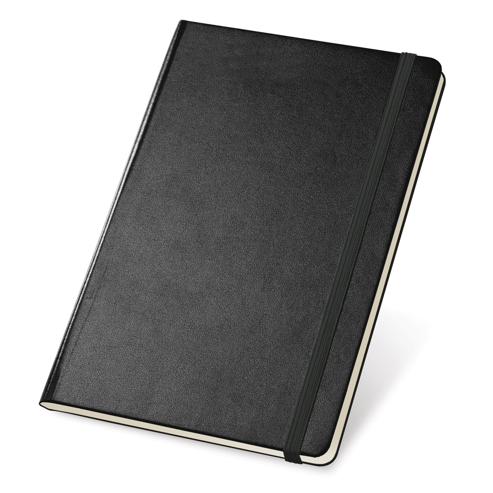 A5 notepad with 160 lined ivory pages, inner pocket, hardcover, bookmark ribbon and elastic band. 137 x 210 mm