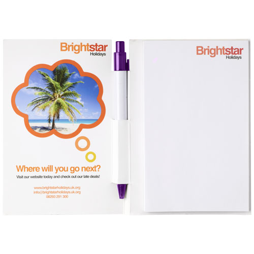 Essential conference pack A6. Includes an A6 notepad with 50 sheets (80g/m2) blank paper and a calypso pen in the spine area. The conference pack has a hard cover (350g/m2). Full colour decoration possible on both sides of the cover, as well as on each sheet.
