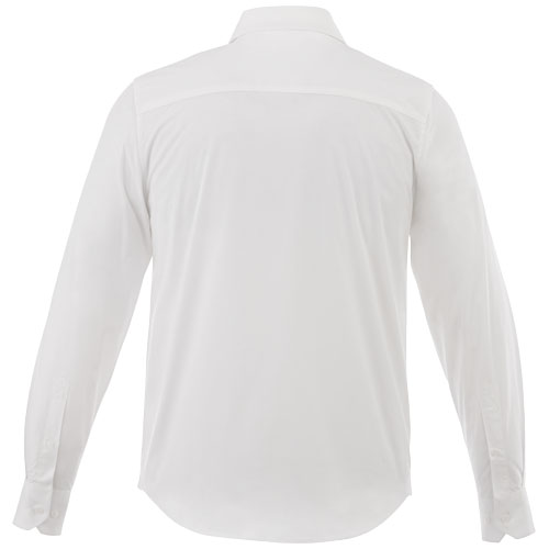 Hidden button-down collar. Stretch fabric. Adjustable cuff with single pleat. Satin piping at inside neck. Dyed-to-match engraved buttons. Heat transfer main label for tagless comfort.