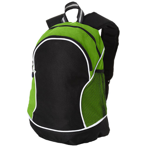 Main zippered compartment. Front zippered pocket with interior organisation. Side mesh pocket. Padded, adjustable shoulder straps.