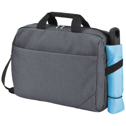 Exclusive design laptop bag with zippered front pocket, zippered main compartment with 14″ laptop compartment and tablet compartment. Removable and adjustable shoulder strap. Carry handles. Trolley tunnel on backside. Elastic tunnel and loop on the side at the bottom can be used to secure your section umbrella or water bottle.