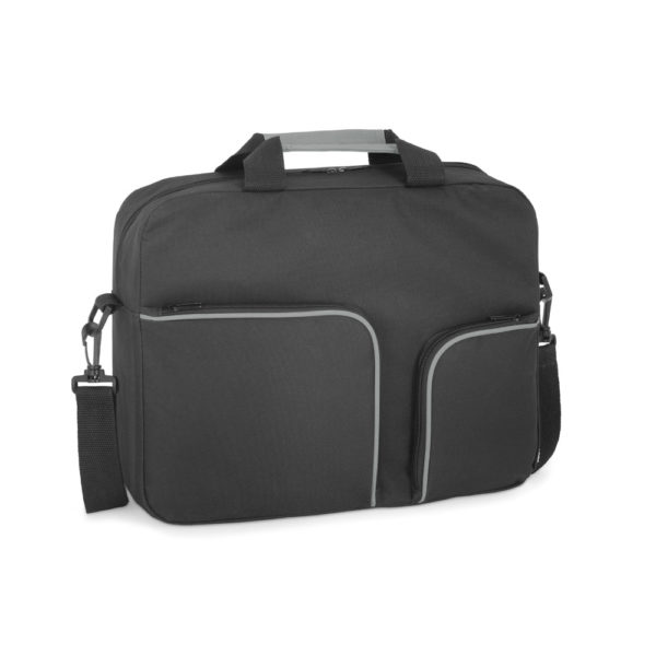 600D multifunction bag with 2 front zipped pockets and adjustable shoulder strap with reinforcement. 380 x 300 x 80 mm