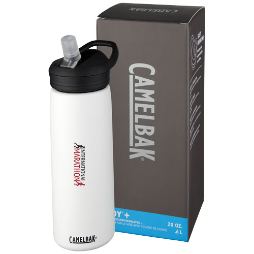 Double-wall stainless steel vacuum construction with copper insulation, which allows beverages to stay cold for 24 hours or hot for at least 8 hours. The construction also prevents condensation on the outside of the bottle. Screw-on lid with spill-proof bite valve and carry handle. Wide mouth opening for easy cleaning and filling. On-trend, durable powder coating. Volume capacity is 600ml. Presented in an exclusive CamelBak gift box. Lifetime guarantee for manufacturing defects with Got Your Bak™.