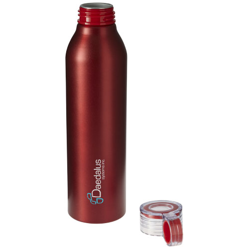 Single-wall construction. Screw-on, spill-resistant clear lid with colour pop feature on the loop. Easy carry. Matte, metallic colour finish. Volume capacity is 650 ml.