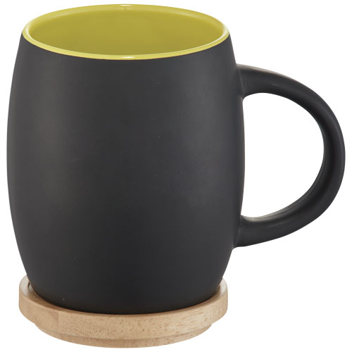 Cosy style ceramic mug with a matte finish and wooden coaster. Dishwasher safe in accordance with EN12875-1 (at least 125 washing cycles) for all decoration methods. Volume capacity is 400 ml. Presented in an Avenue gift box.
