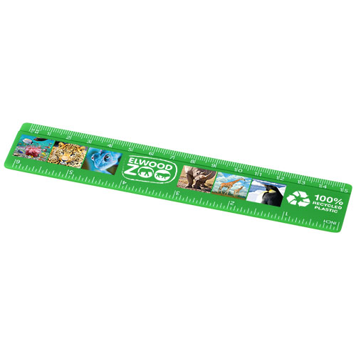 Solid recycled plastic ruler with markings available in both inches and centimetres.