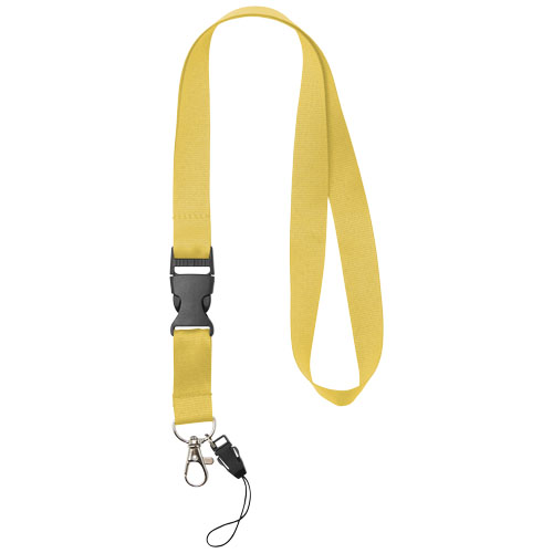 Kaklajuostė, daugiafunkcinė, su nusegama sagtimi, spaustuku ir laikikliu telefonui . Įvairių spalvų, su galimais skirtingų dydžių logotipais.