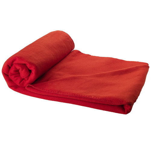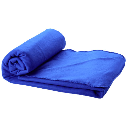 Single colour blanket with handy pouch and drawstring closure. Blanket size is 150 x 120 cm.