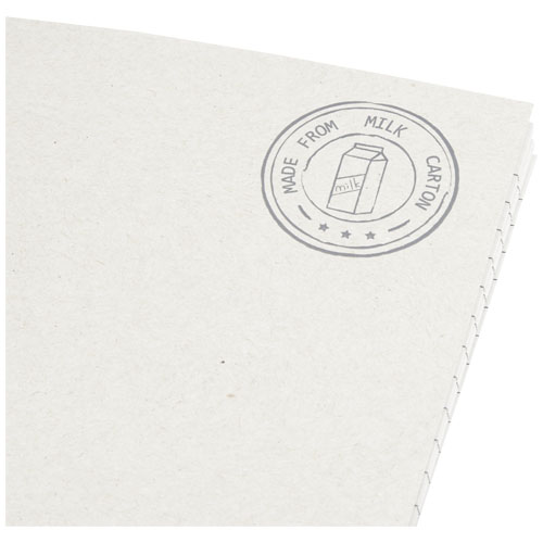 A5 formato užrašinė su spirale 30 ( 80 g/m²) lapų linijomis, pagaminta iš perdirbtų pieno pakelių (iki 70%). Panaudoti pieno pakeliai surenkami, rūšiuojami, apdorojami ir paverčiami popieriumi, atliekos tikrai paverčiamos kažkuo naudingu.