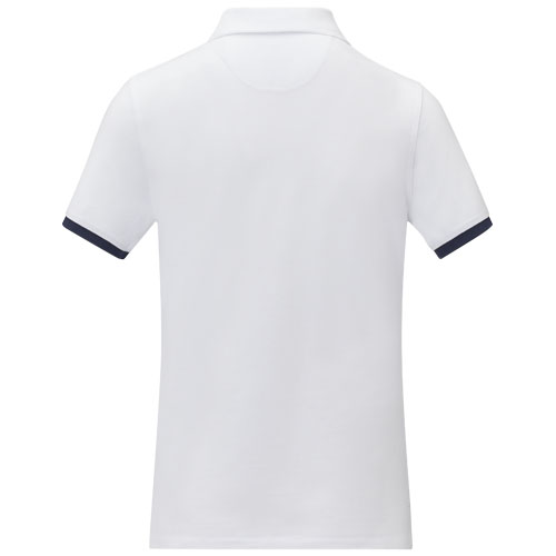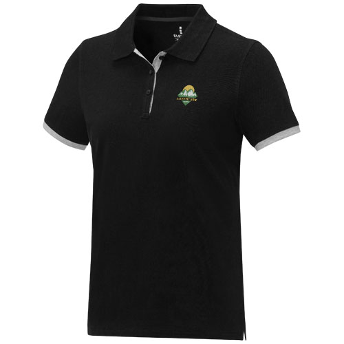 Flat knit collar. Flat knit rib cuffs. Contrast coloured inside placket and rib cuffs. Three button placket. Pick-stitch details. Satin neck tape. Side slits with satin tape finishing. Half-moon. Forward shoulder seam with chain stitching. Dyed-to-match engraved buttons. Heat transfer main label for tagless comfort.