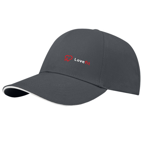 Sustainable promotional headwear. Pre-curved visor with sandwich. Embroidered eyelets for ventilation. Tri-glide metal buckle closure. Head circumference: 58 cm.