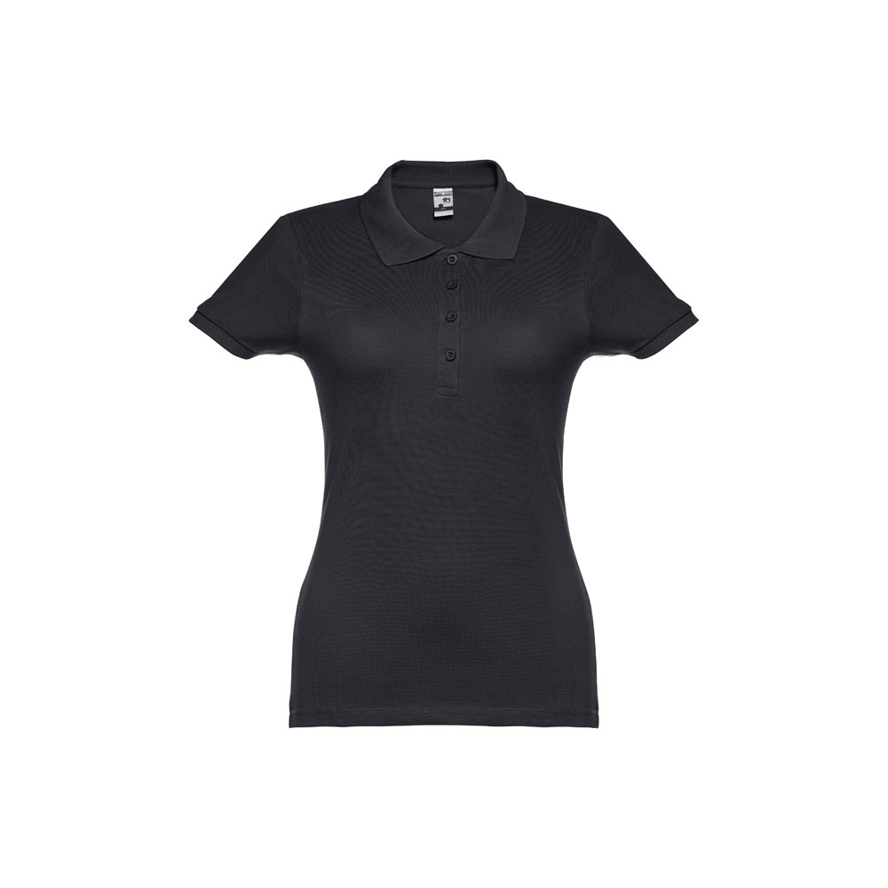 100% carded cotton pique women’s short sleeve polo (195 g/m²) (colour 183: 85% cotton/15% viscose). Features a rib collar and sleeves, the collar is reinforced with piqué ribbon. On the front, next to the collar, there are four matching colour buttons (extra button inserted in the inner seam). Piece cut and sewn. Sizes: S, M, L, XL, XXL