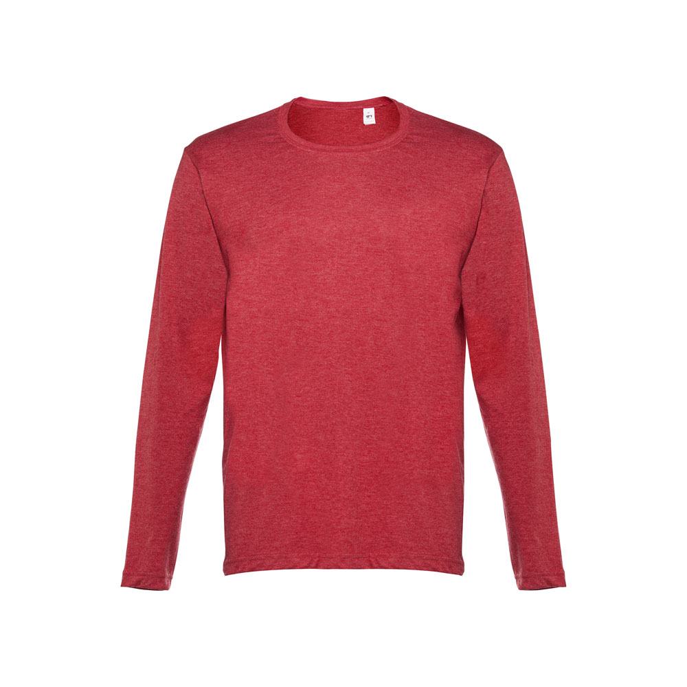 Long-sleeved men’s t-shirt 100% cotton jersey (150 g/m²) with carded cotton yarn (colours: 194, 195: 60% cotton/40% polyester, colour 183: 90% cotton/10% viscose). Rib collar 1×1 and jersey reinforcement ribbon. Tubular T-shirt with regular cut and double seam on the sleeves and hemline Sizes: S, M, L, XL, XXL