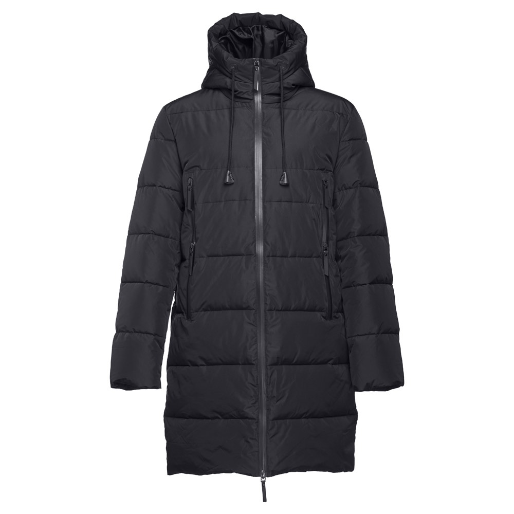 Long padded parka (unisex) in 100% polyester (exterior: 75 g/m² 300T polyester pongee coating, interior: 100% polyester 50 g/m², filling: 335g/m²). With lined and padded hood and elastic cuffs. Warm and sturdy parka with decorative topstitching, with interior and front pockets with waterproof zippers. Sizes: S, M, L, XL, XXL