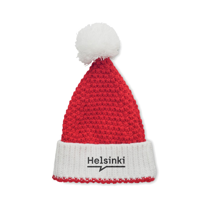 Christmas knitted beanie with cuff and bobble in soft stretchable acrylic.