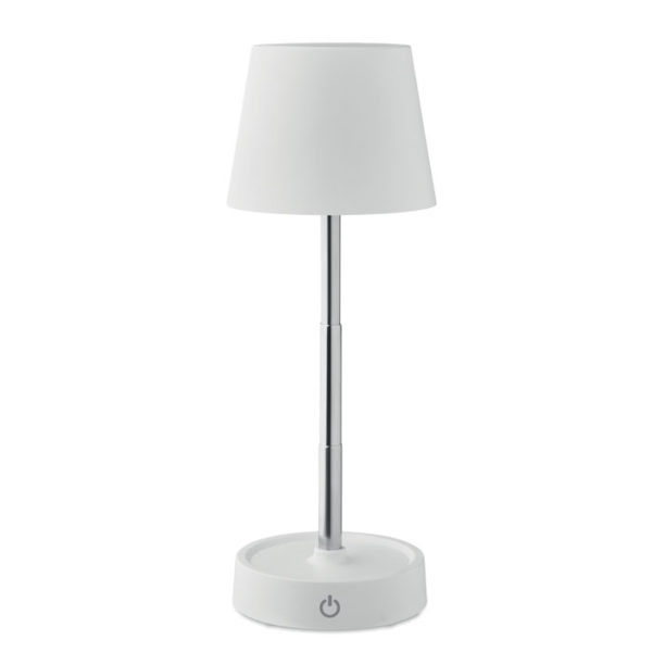 Retractable and rechargeable USB table lamp in ABS. Includes 12 LED lights with adjustable light intensity and stepless dimming. Built-in battery: 1200 mAh (6hr working time after fully charged). Including USB Type-A to Type-C charging cable.