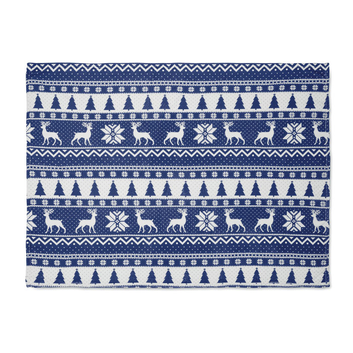 190 gr/m² RPET coral fleece blanket with winter pattern. Wrapped in ribbon and printable card.