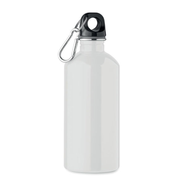 Single layer bottle in recycled stainless steel (90% recycled stainless steel and 10% stainless steel) with carabiner. 500 ml. Sublimation print available on white item only. Leak free. As this is a single walled mug, heat transfer can still occur.