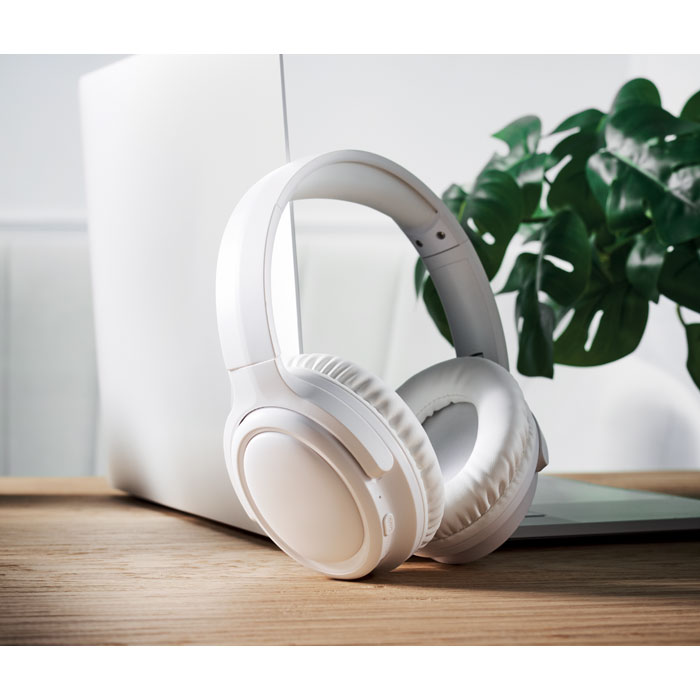Active noise cancelling (ANC) 5.3 wireless foldable headphones in ABS. Hands free function and built-in microphone. Playing time approx. 17 hours. Includes Type-C charging cable. Rechargeable 200 mAh Li-ION battery. All presented in PU pouch. Operating range: 10 m.