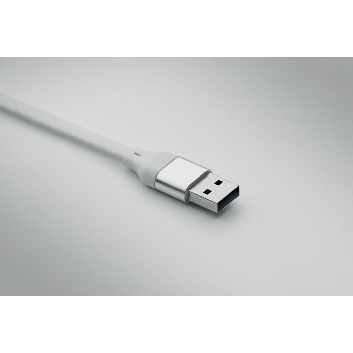 60W cable in recycled ABS casing with keyring and phone stand. Input: 2-in-1 Type-C and Type-A. Output: Type-C and micro-B (2 in 1 pin). Cable length: 26 cm.
