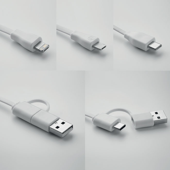 Bamboo key ring with phone stand functionality and integrated charging cable. Input: 2-in-1 Type-C <(>&<)> Type-A. Output: Type-C and micro-B (2 in 1 pin).