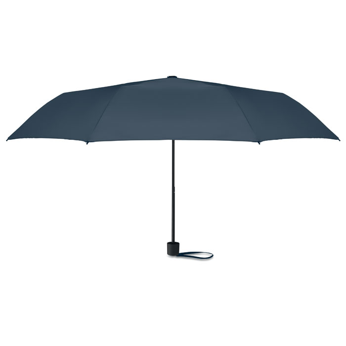 21 inch 3 fold manual open and closure windproof umbrella in 190T RPET pongee. Includes shopping bag pouch. Has hidden zippered compartment to hold umbrella and keep bag contents dry. When bag is not in use, it rolls up and zipper compartment acts as the umbrella sleeve.