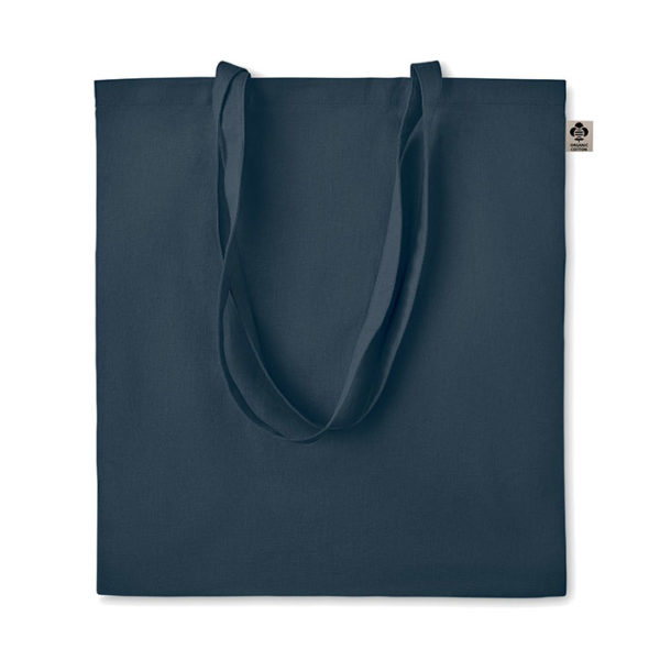 Packaway 210D 51% PET polyester shopping bag with a matching pouch for easy storage. Backside of the bag is printed with the text „I am made from 3 recycled bottles”.