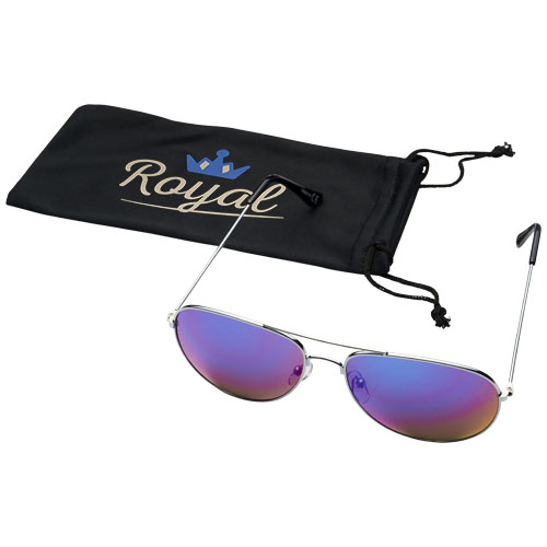 Classic design sunglasses with on trend coloured mirrored lenses. Comes with microfiber pouch which can be used as a cleaning cloth. Compliant with EN ISO 12312-1 and UV 400, lenses are graded as category 3.