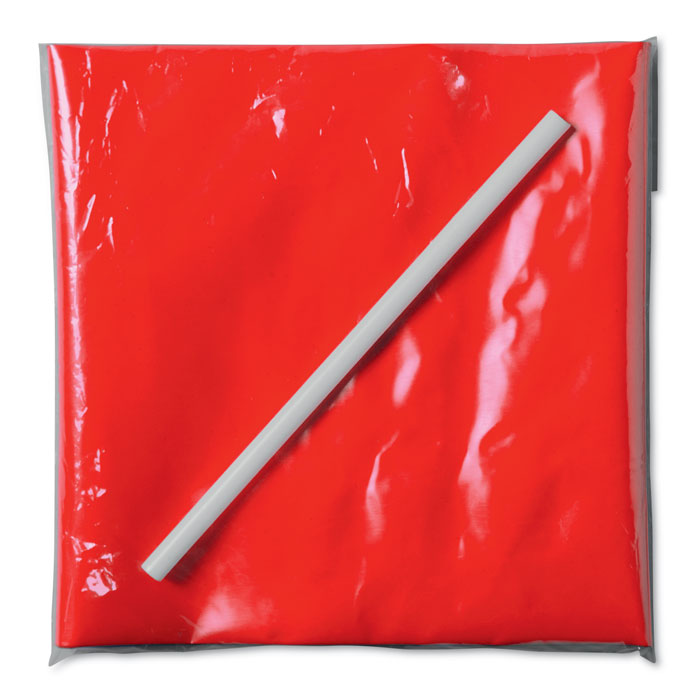 2 inflatable cheering sticks. 1 straw included to inflate the item. PE.